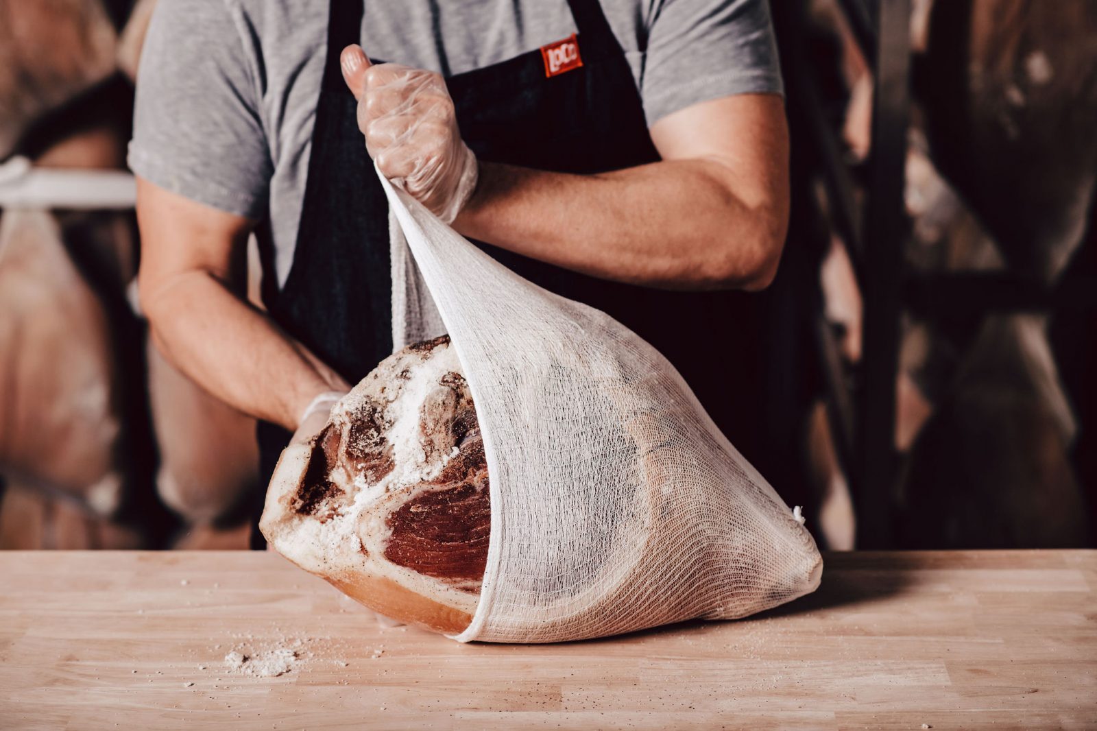 Each ham undergoes an artisanal process, where they are meticulously hand-rubbed with our signature blend of salt and spices. This approach ensures each ham receives individual attention and care, guaranteeing an exceptional quality product.