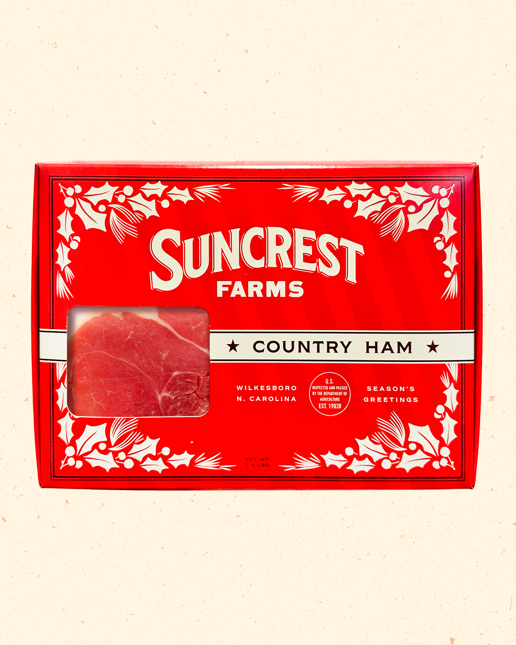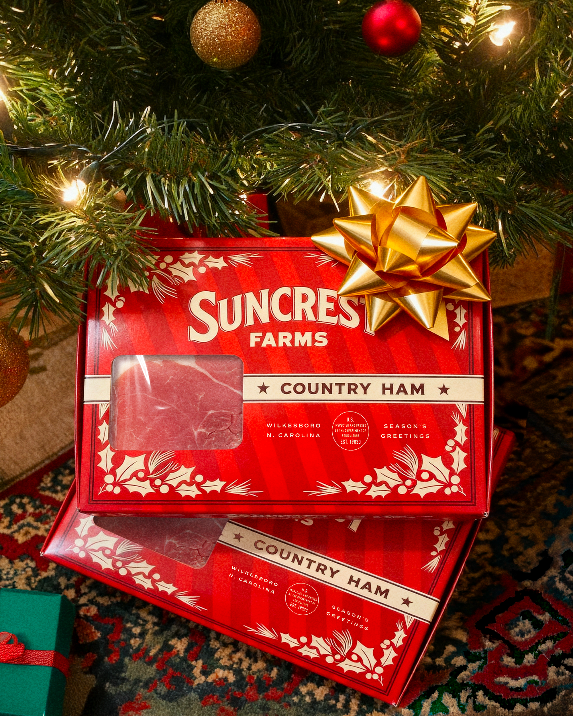Wrapped in a festive red box, this holiday gift set brings the taste of tradition straight to your table. Inside, you’ll find four packages of our classic country ham Center Slices — perfectly seasoned, cured, and ready to enjoy for breakfast, lunch, or a holiday dinner spread.